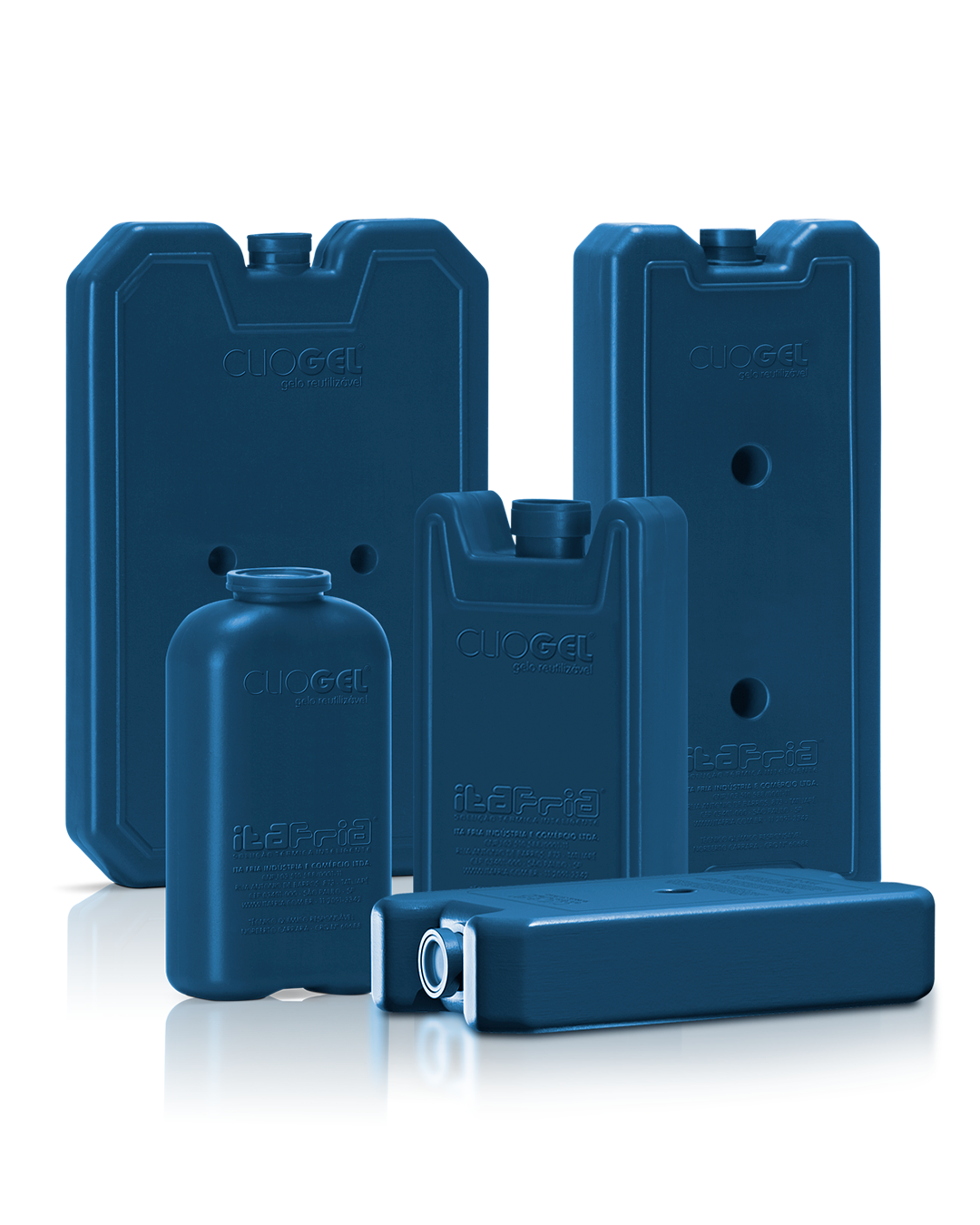Produtos reutilizáveis (gelos rígidos e flexíveis) com longa vida útil.